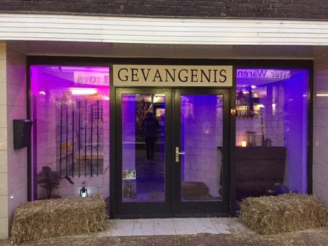 Hier heb ik voor de eerste editie van het Dickens festijn 2016 te lemmer de gevangenis geschilderd. Ik had 2 muren tot mijn beschikking achter een etalage ruit. Een ontzettend leuk resultaat, helemaal toen het voor de avonden was aangekleed!
