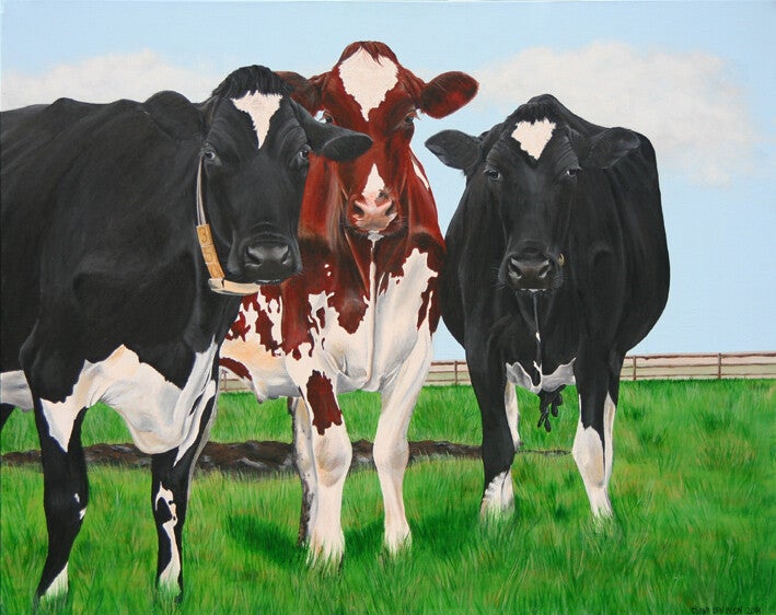 Deze opdracht is gemaakt voor een boer. Dit waren zijn lievelings koeien. Ze hangen nu bij hem in de gang waar hij ze elke dag weer begroet.