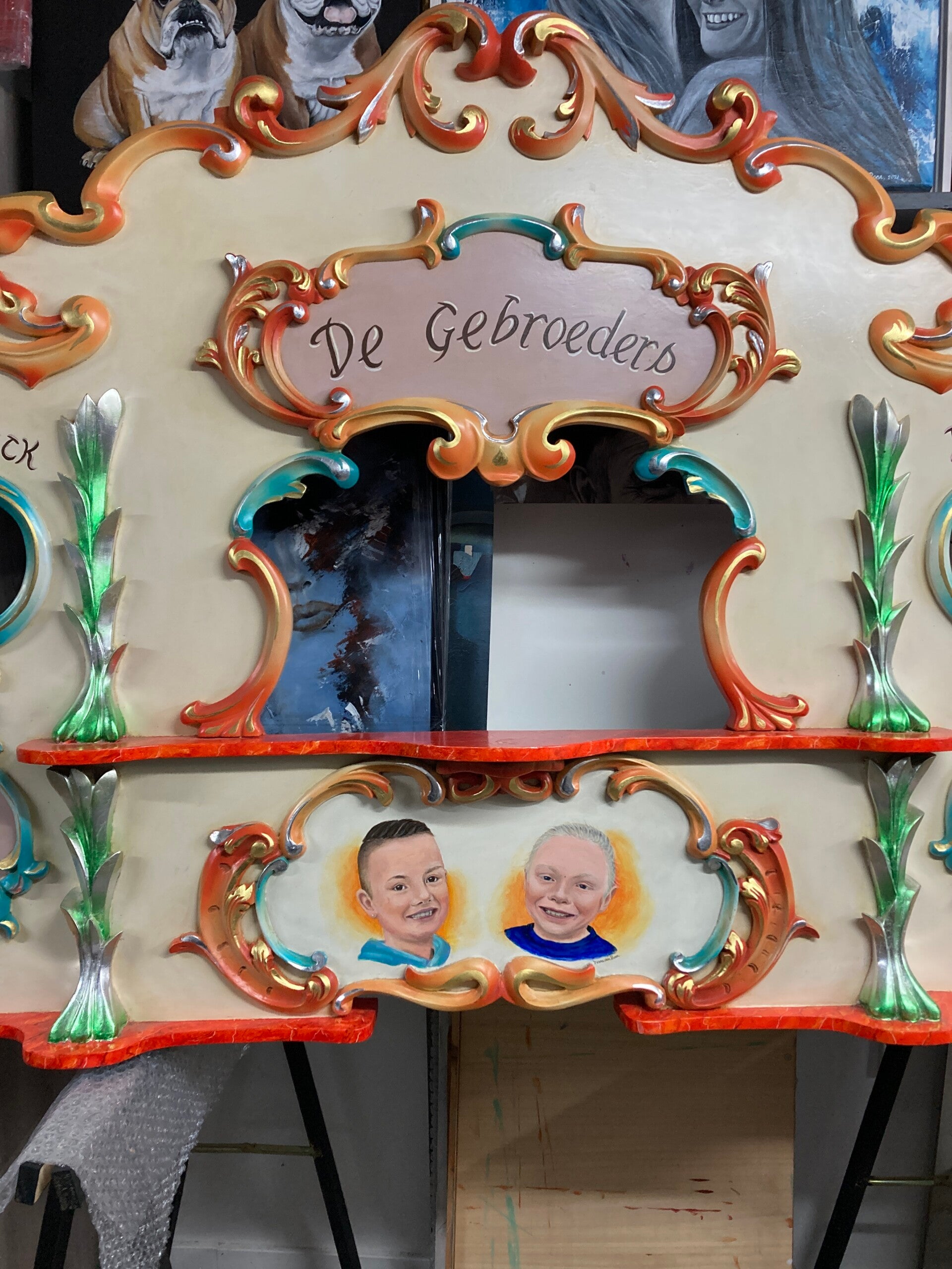 Ik kreeg vorig jaar (2024) een vreemd verzoek, of ik een portret van 2 kinderen op een orgel kon schilderen? Ik moet zeggen dat ik er veel moeite mee gehad heb, het materiaal van de orgel werkte niet echt mee, de schaduwen konden niet lekker in elkaar gepoetst worden waardoor de zachtheid van de kinder gezichten moeilijk te vangen was.